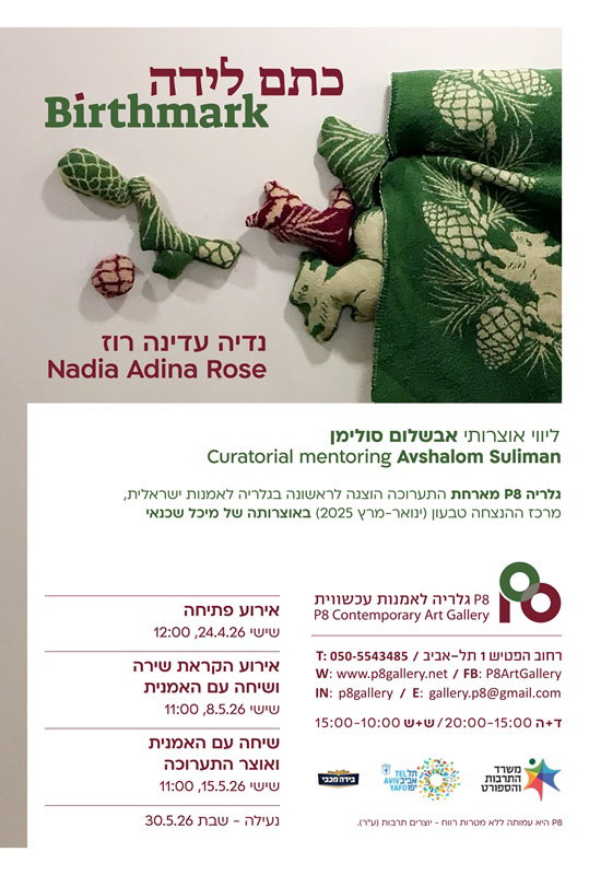 "כתם לידה" הוצגה לראשונה בגלריה לאמנות ישראלית בקריית טבעון באוצרותה של מיכל שכנאי. התערוכה נודדת עתה לגלריה 8P לאמנות עכשווית בתל-אביב במסגרת מדיניות משרד התרבות והספורט לעידוד שיתופי פעולה בין מוסדות תרבות מחלקים שונים של ישראל.